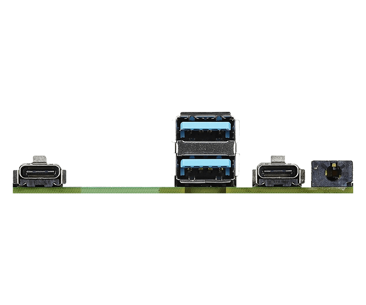 | USB | 2 x USB 3.2 Gen2 (Type-A) 1 x USB 4/Thunderbolt™ 4 (5V/3A, supports DP1.4 display output) 1 x USB 3.2 Gen2 (Type-C, 5V/3A, supports DP1.4 display output) *For Thunderbolt support, please refer to support list. |