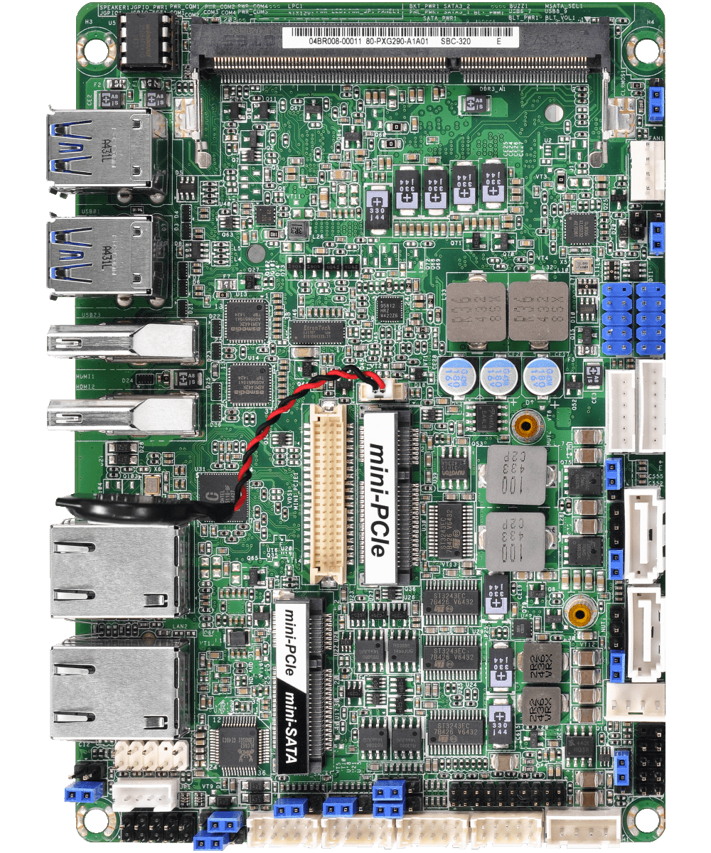 | mini-PCIe/mSATA | 1 x Full size with SATA3 and USB 2.0 |